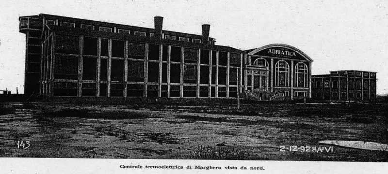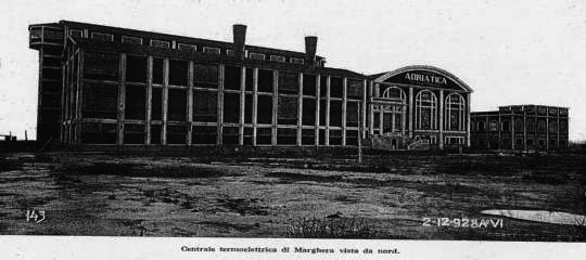 - Il fabbricato macchine è largo m. 30 ed alto m. 20 all'imposta dell'arcone di copertura e la sua lunghezza ad impianto completo sarà di m. 65. La sala macchine è a m. 6 di altezza mentre sotto trovano posto i condensatori con. relativi accessori. Per i montaggi è stato installato un ponte grue da 100 tonnellate fornito dalle Officine di Battaglia.