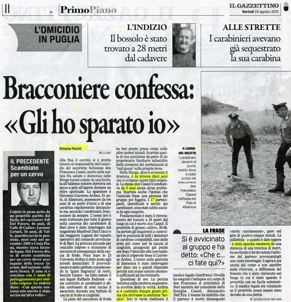 a) - Don Cassol - agguantato da MORTO, da 1.000 km di distanza, e ancora caldo.