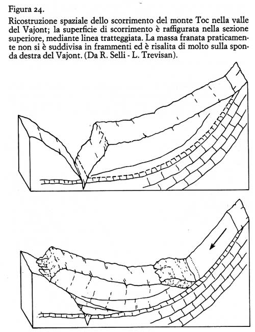 Le condizioni geologiche della parete franata erano quelle classiche dette «a franapoggio», cioè con strati rocciosi, in questo caso calcari marnosi alternati a più sottili letti di argilloscisto, moltoinclinati verso l'esterno e privi di appoggio al piede (fig. 31).