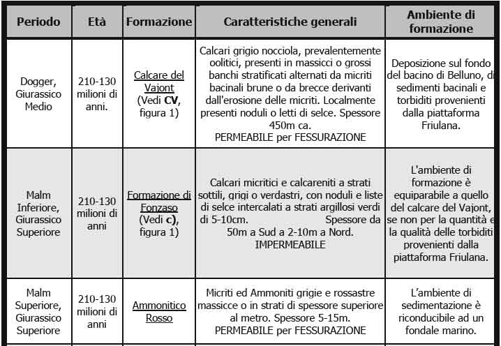 b. L'alternanza di strati permeabili (calcari) e impermeabili (rosso ammonitico) ha portato:
