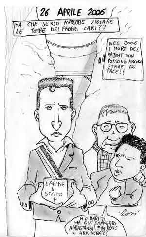Ora, da mio marito Vincenzo si pretende che chieda scusa per aver cercato di proteggere la memoria dei suoi cari. Lui non ha danneggiato nulla, e non lo avrebbe mai potuto fare. Ha solo chiesto (da 40 anni invano, n.d.r.) rispetto per sé e per i suoi morti. Per quei morti per i quali nessuno, mai, si è sentito in dovere di chiedere a lui, "scusa".
