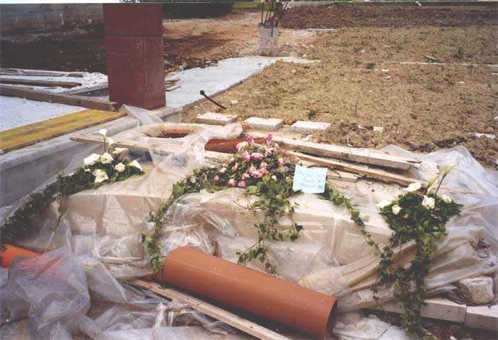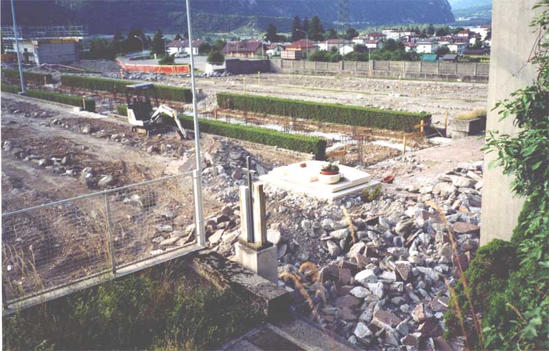 E finalmente il cimitero è stato ripulito da ogni ostacolo. Così per i lavori, ruspe, camion e scavatori possono ora scorrazzare in lungo e largo per il cimitero; l'unico angolo indenne da questo scempio è la tomba del Vescovo Muccin addirittura coperta da nylon e fiori perché non si sporchi.